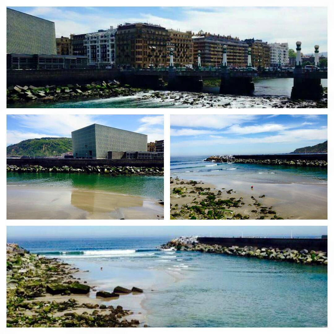 Cuando la marea esta baja, tal y como vemos en las fotos, se pueden observar todas y cada una de las piedras que trae el rio Urumea, as铆 como los pececillos que van de camino al mar. Es un espect谩culo super bonito ya que normalente en este punto las olas son muy grandes y alocadas por lo tanto no podemos pararnos y disfrutar de estas aguas