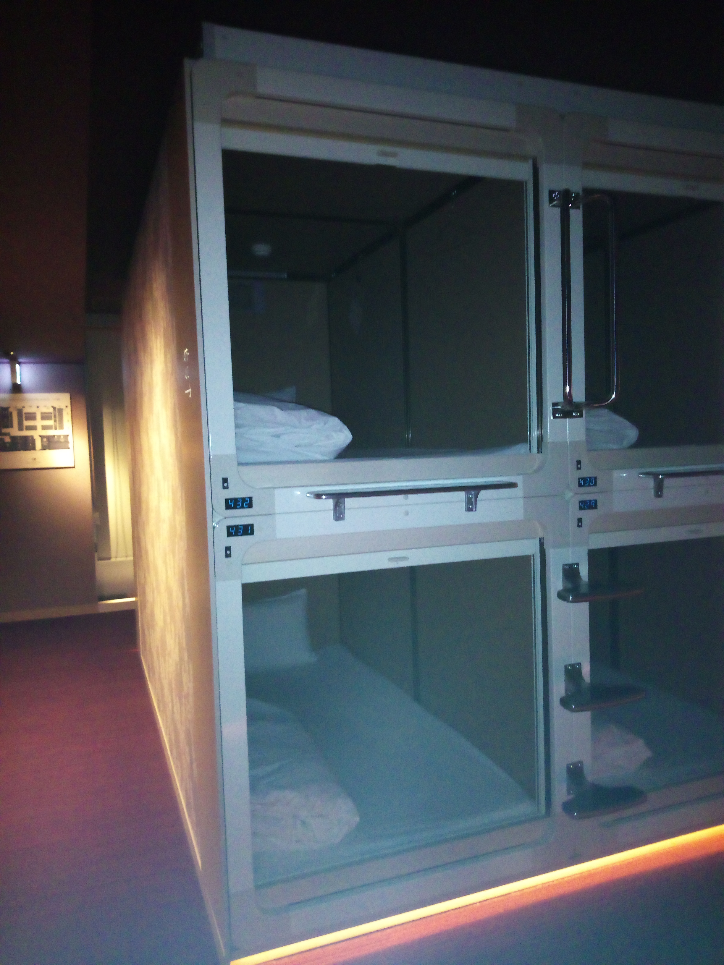 En esta foto se pueden ver todas las cápsulas seguidas… las habitaciones son muy grandes y hay muchasssss