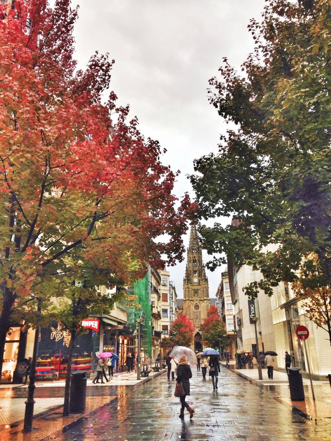 Hoy hemos sacado esta foto tan bonita en el centro de Donostia, San Sebastian. Como podéis observa se ve la aguja de la catedral del Buen Pastor